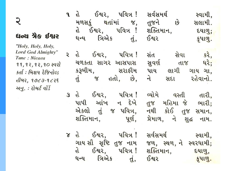 | ધન્ય ત્રિએક તું, | ઈશ્વર કૃપાળુ. |