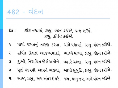આજ, પ્રભુ, અમ અંતર ઉચરે, જય, પ્રભુ જય, અમે વંદન કરીએ.