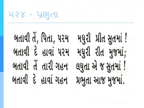 | બતાવી દે હાવાં ગહન પ્રભુતા આજ મુજમાં. |